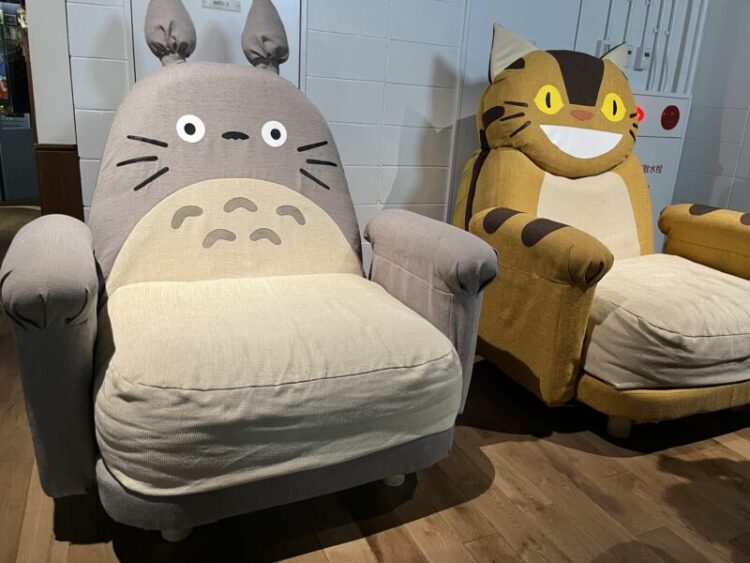 先に進んでいくとトトロと一緒に記念撮影ができる写真スポット。トトロとネコバスのソファにもしっかり座ってきました。