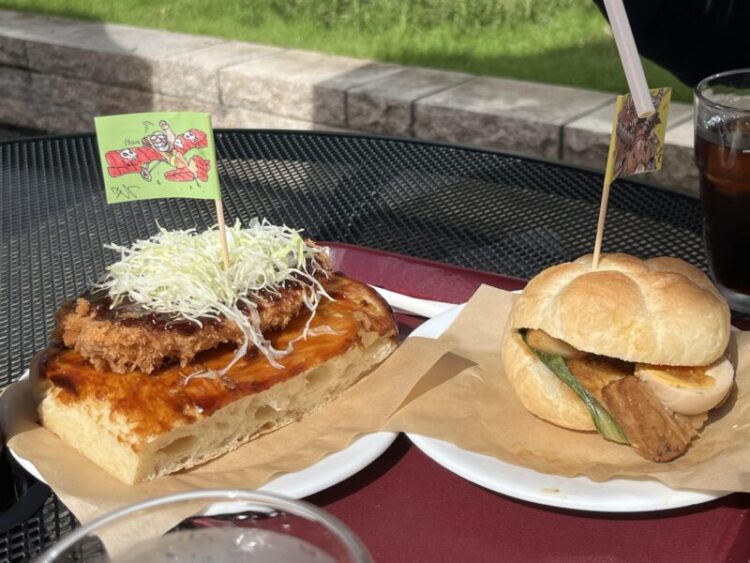 サンドイッチには宮崎駿監督の手描きのイラスト入りの旗が刺さっています。